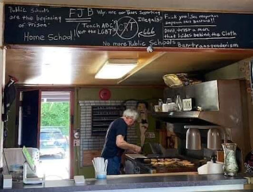 There’s writing inside on the chalk board that says “go woke, go broke”. Unfortunately, you will also go broke when you plaster your illogical, bigoted beliefs as a huge welcome sign. We stopped by because we were looking for a good spot to eat on our visit to Vashon and Perry’s seemed promising. I should have known from the second we started up the path to the door when we saw their vandalized American flag on display that this is not a place we’d want to take our business. A whiteboard in the window says “Jesus loves you”, but once you step foot inside, the absence of Christ-like love is palpable. Written on the chalkboard in big writing is some of the most idiotic, hateful remarks. Now, I could have ignored this on a community chalkboard where everyone is allowed to share their thoughts, but the fact that this chalkboard is hanging above the order window lets me know that these are intentional messages from the owner or employees. I come from a red state, so I am more than used to seeing messages I don’t agree with, and have even patronized businesses that I know are owned by those who believe differently than me, and I am not easily offended. However, I was absolutely appalled by what I saw today. At the very least, please stop taking the Lord’s name in vain. You do not represent Jesus. Jesus loves all and God did not send him to earth to condemn (John 3:17), so I’m pretty sure He didn’t send y’all to. I hope you’ll reconsider how you represent yourselves, Christ, and Vashon Island. Conservatism is one thing…bigotry and...