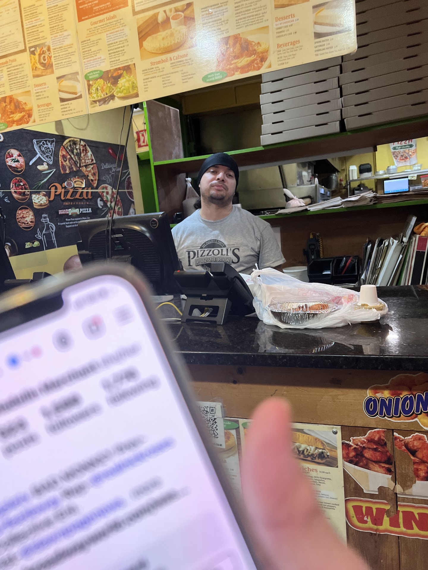 Read moremoved to the neighborhood recently, and closest pizza joint. went there several times, as the owner was nice and would always rave about how the ingredients were fresh and the pizza was the best we would find. quickly realized it was just not very good. went in tonight for a jumbo cheese slice of pizza. cashier was hitting on a drunk girl as i walked in, and took probably 15 seconds to acknowledge me. put the order in, and he went back to hitting on her (i was the only other person inside). she walked out once she got her pizza, and he commented to me on how he "had no chance" with her. flash forward to the 7 minutes to me getting my pizza. walk back to my house, open it, and see half the crust is ripped off (picture uploaded on yelp). i call them, and am immediately put on hold (understandable, late night). when he picks up, i tell him that half my crust is ripped off and he asks if i want to order another slice. i tell him again, and after a failure to communicate i hang up in defeat and give up. they call back, and he asks me if i had a problem with the slice (I'm a little impressed with that). i tell him i am coming over, and walk back to the pizzolis. they already have another slice ready for me, and he half asses apologized for the mistake and seemed annoyed that i came back and was taking up his time. they blame it on the pizza getting caught in the oven, but you be the judge (picture uploaded on yelp). as soon as i had my hand on the box he went back to talking to his friends in the store. i threw out their replacement slice (for fear of "waiting" type things on the slice) and...