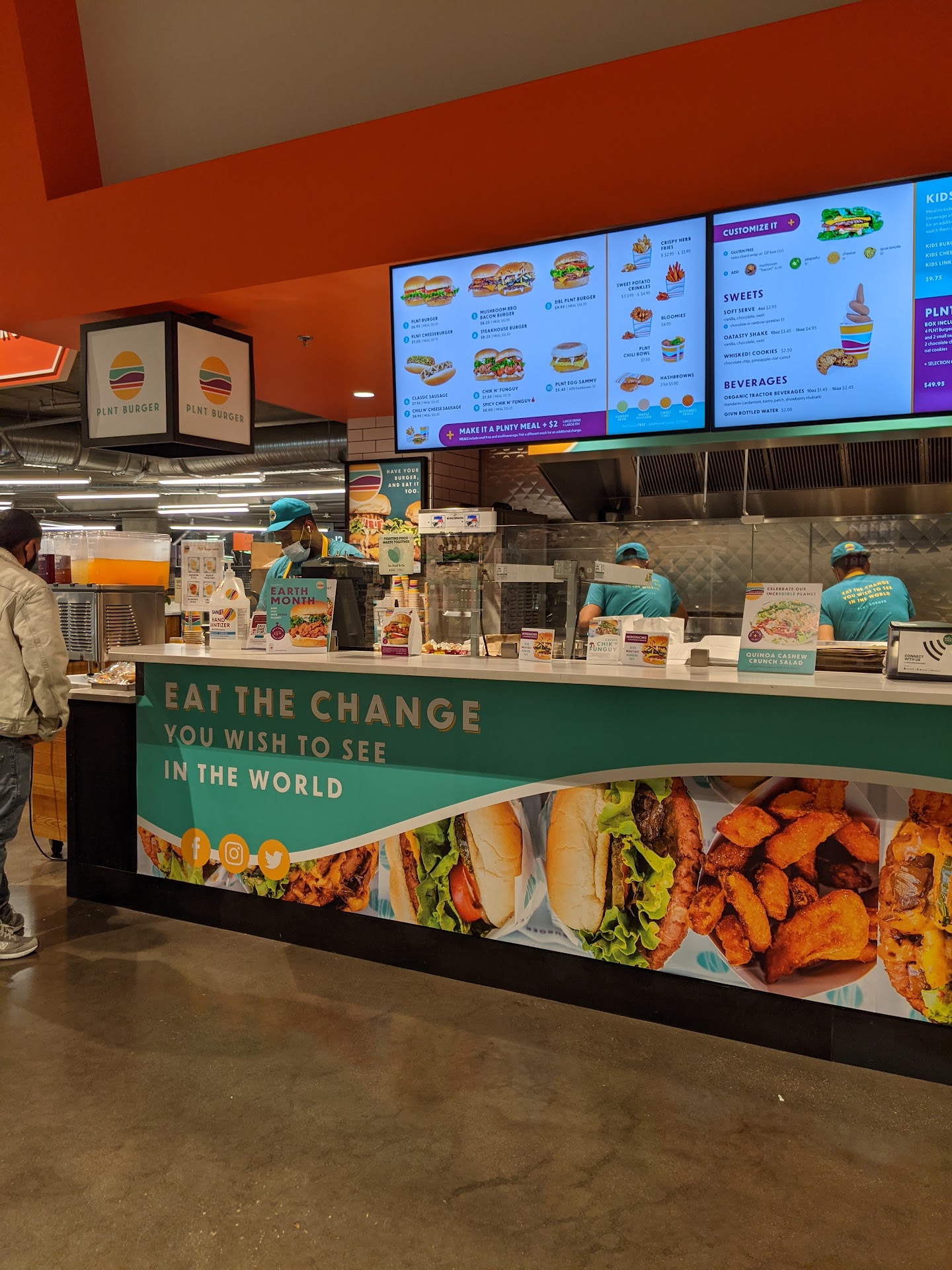 Read moreI stopped in here when i was passing by Whole Foods. I have been on and off vegan/vegetarian/pescatarian for the past 26 years and Ive had my fair share of meatless options. While I do love the Impossible Burger I've had at restaurants previously I honestly couldn't recall ever having a Beyond Burger. So I stopped in and like a previous reviewer said it sucks that you have to walk all through the Whole Foods to get to the location, but the staff greeted me immediately and were super friendly. I ordered a kids cheeseburger meal with the garlic herb fries because I wasn't very hungry. They cooked it fresh to order and it didnt take very long, less than 10 minutes. The garlic fries were good although they really needed salt. The herb dipping sauce was okay. Nothing special. The burger was really the stand out though, like it should be. The Patty was flavored well I love the pickles and ketchup, I did not like the cheese on it though so the next time I get one will definitely be without cheese. I know it's vegan cheese but it was just had a really weird texture once it was cooked and it's stuck to the paper wrapping of the sandwich and just left a really nasty feeling in my mouth. Also, their lemonade leaves A LOT to be desired. It tasted like watered down sugarless lemon water. I threw it away after one sip. It was really awful. So I will definitely eat there again if I am in the area of a PLNT Burger and hungry. I just recommend staying away from the cheese and the drinks. Also, I don't know who's winning the "meatless burger war" because both of them are pretty...