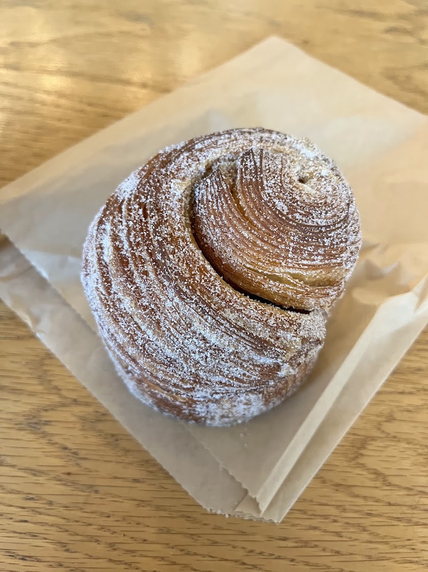 The matcha was solid, and I loved the little heart latte art the barista added. The morning bun was also delightful -- it was super flaky and buttery, and it had an almost impossible number of layers. It wasn't super sweet, but it was rolled in delightful orange-scented cinnamon sugar, giving it a lovely hint of...