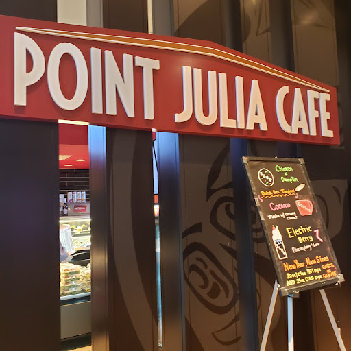 The point Julia cafe is located just off the gaming floor at the point casino. They have soups and sandwiches, a couple burgers and a selection of pre-made salads. There usually isn't a large line but it takes quite a while for them to make your order. I don't think I've waited less than 20...