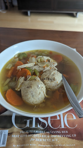 Read moreI was absolutely so excited about this place. Their menu is adorable and I am in love with the packaging, the soup options, and the whole concept in general. I will start off by saying this meal was around $30 for a vegetarian matza ball soup and a challah roll, not cheap but I was happy to pay this amount as it’s exactly what I was craving!