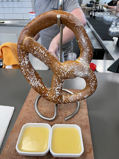 To start, the bartenders (Olivia and Alex) welcome you when you walk in. Not my typical experience to start with in Washington and I have been in tiny towns hole-in-the-wall bars and fancy big city pubs. There are 68 taps. That would be enough said except, those taps include a few good wines, 4 nitro taps and tons of other great options. The boards are digital and even tell you approximately how much is left in that keg, so you can see yourself what’s popular locally. Then there was the food. If I could visually show you the deliciousness and that was the Honey Hot Chicken, I would, but I couldn’t stop eating it and then it was gone. Best sandwich I’ve had in years. The kitchen manager, Brooke, is on point with their recipes and and quality. drooling just thinking about another one And even through me purposefully talking to them while they were busy, Olivia and Alex handle things in stride not falling behind and communicating extremely well. 5 stars aren’t enough for this place. The pretzel was also great and came hanging above the cheese like a piece of meat. Love it. Definitely returning.