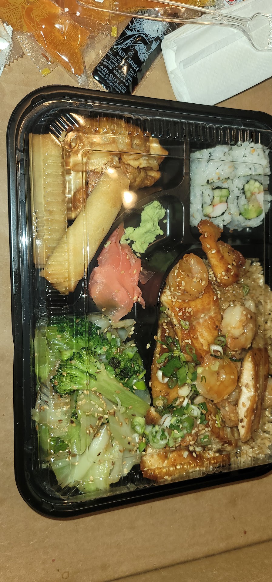 The Quickway Hibachi Shrimp Bento Box provides a tasty and convenient meal option. The bento box comes with a generous portion of hibachi-style shrimp and vegetables, plus white or fried rice, and a couple pieces of California roll. The lightly grilled shrimp are flavorful and juicy, with a nice hint of smoky teriyaki glaze. They are paired well with the mixed veggies like cabbage and broccoli. The rice serves as a nice base that soaks up any extra sauce and flavors. The vegetables provide a small crunch and fresh contrast. While simple, the California rolls round out the meal nicely. Overall, the Quickway Hibachi Shrimp Bento Box makes for a satisfying lunch or dinner, especially for the affordable price point. The ample shrimp and veggies ensure you walk away full. If you're seeking a no-fuss meal that doesn't require lots of time or cleanup, this bento box is a...