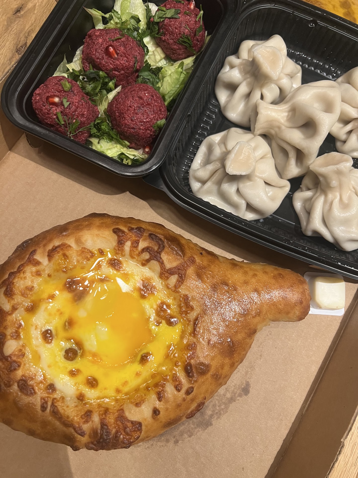I'm not sure what happened last night but my order was horrible. The bread sticks had mold on them...I kinda feel like that's all I need to say 🤷🏿♀️ but also I was really excited for the lamb soup which I paid $20 for and ended up with 4 sips worth of soup without much any lamb (was in the smallest carryout plastic container. The wings were cold (could've been a different issue) and maybe this is just the flavor of Georgian ribs but it tasted like watery tomato paste with a hint of spice. The wings were soaked in cold tomato soup basically. Maybe I should've stuck with Georgian meals I've had in the past but if it's on the menu I assume you can cook it. The mold is just unacceptable.