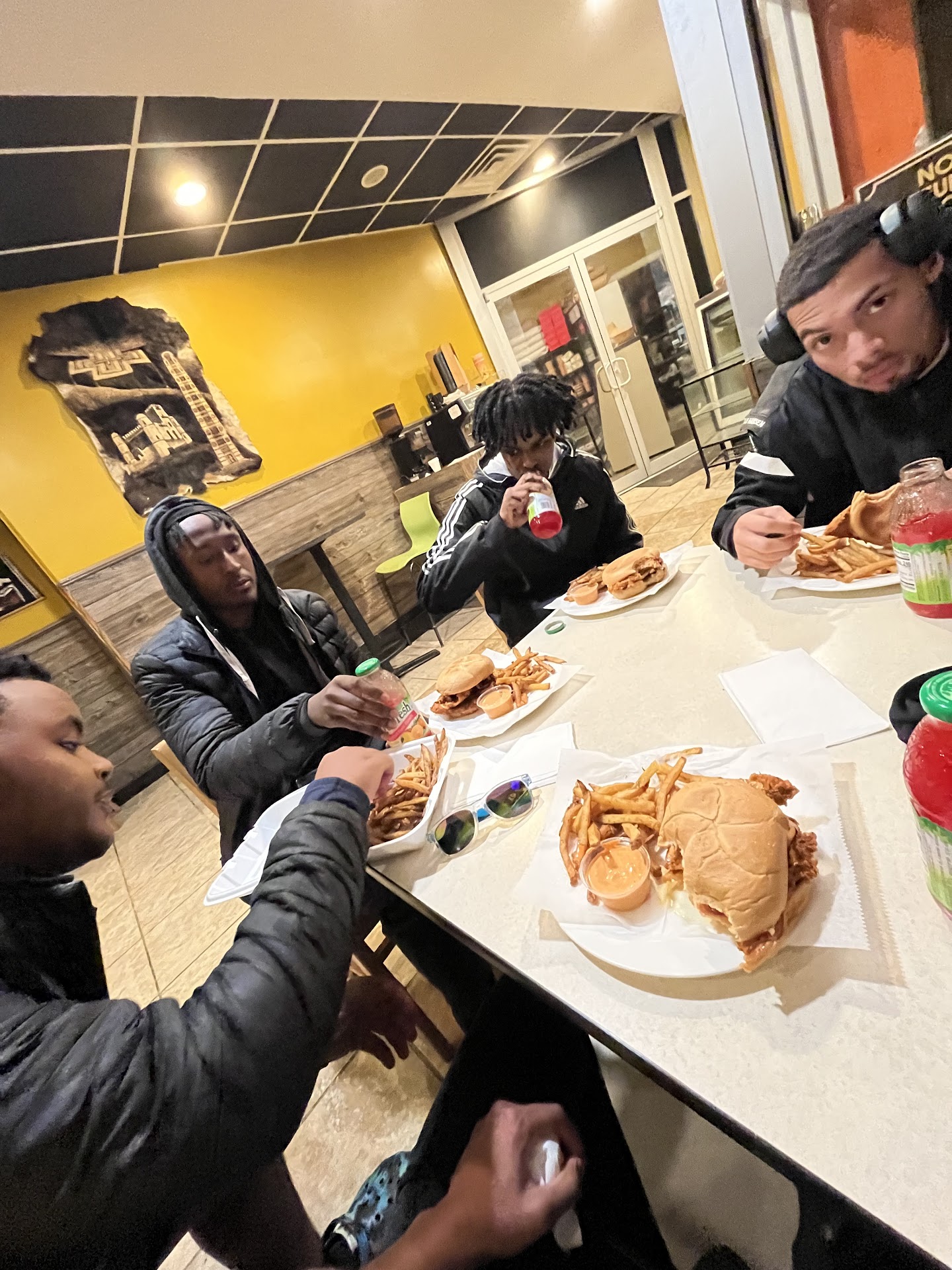 Instead of the nice sandwich pictured, I got a thin fried chicken breast on a hoagie and a sad strip of plastic cheese. I expected for a most popular item that it would have been better and though it says honey butter they either missed putting it on as there was not a hint of honey nor butter, or the sauce is tasteless. And the fries had either been cooked in old oil or left to sit too long.