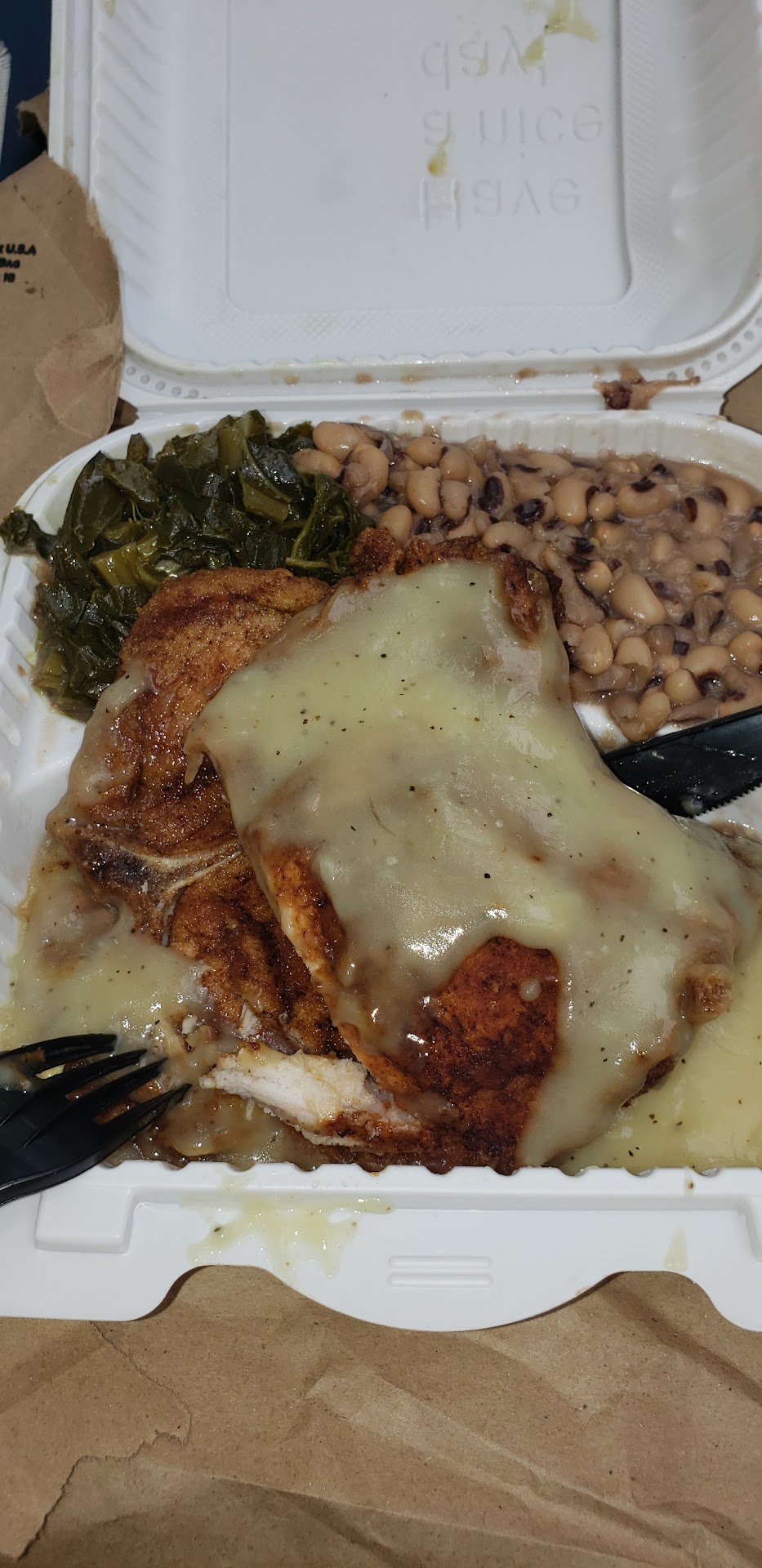 Everything fried is fried nicely. There are non fried options, but if you're getting soul food, fried is usually what you want. The sides are good. 3 kinds of gravy. Pork chops are smothered or not...I like to add gravy, vs smothered so the light breading has its crispiness. The black eyed peas, greens, mac and cheese are perfection. There are other places this good farther out...For example Grannies in Owings Mills, but you'll pay 2X as much. Nearer Brightwood Oohs and Ahs approaches, with nicer ambience, but also at 2X the price. U Street Oohs and Aahs is decent, but the food is not...
