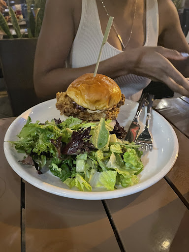 The new dining experience will take some getting used to. I would advise parents with children to practice now in smaller settings before the rush and full capacity. Scarlet Oak has a nice outdoor seating area perfect for dinning out on a sunny day. 90% of the patio area is covered so you don't have to overly worry about being directly in the hot sun. All tables are six feet apart. Waiters will only come to your table if your mask are on. I say know what you want and put your order in for everything all at once so you aren't burning up in your mask while waiting. You have to raise your hand and put your mask on to get their attention to come to the table. No mask no service. The restrooms have to be entered through a separate back entrance and your mask has to be on at all times. There is someone watching at all times to ensure social distancing and that there is only one person in the bathroom and one waiting in the hall. As a parent of two they allowed me to wait in the hall and the boys go in together, lol, I wasn't moving. Once you leave the bathroom the watcher will come and provide you with additional hand sanitizer. You must wear your mask back to your seat. The food was ok, the highlights were the sprouts, pizza and wings. The fried chicken sandwich was overly fried for my liking although that may be perfect for others. The Apple Mule was very refreshing.