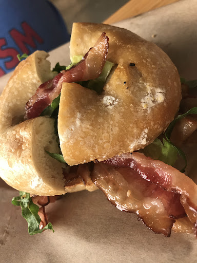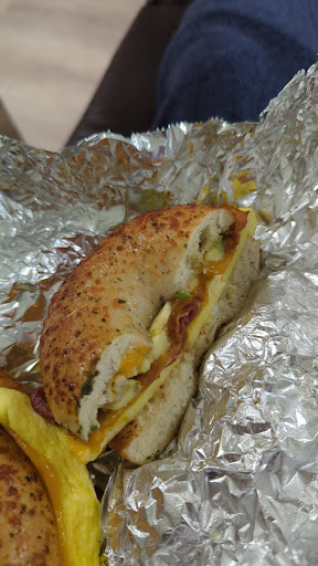 Read moreWe were craving bagel sandwiches for breakfast this morning and liked the menu options & reviews for this place. We ordered using âDoor Dashâ but picked it up instead of having it delivered. We ordered (2) BLTâs - only variance was I selected the âjalapeño cheddarâ bagel & husband had the cheddar, bacon & chive bagel. Also ordered a âbuild your ownâ - warm âeverythingâ bagel with chicken breast, cheddar cheese, lettuce, pickle & avocado (extra $1). Also got a plain bagel with cream cheese (it doesnât come on the side but on the actual bagel) and extra cheddar jalapeño bagel. The pick up time was actually less (got there and had to ask where pick up station was located - which is near the wall of windows) - was already bagged & ready for pick up when we arrived 10 mins early. The bagels were not overly thick and had great flavor and were soft. I tried all bagels and can highly recommend each one...my only issue is there is no âsourdoughâ bagel option. This place was guile busy - even seating outside with lots of people enjoying the sun. We...