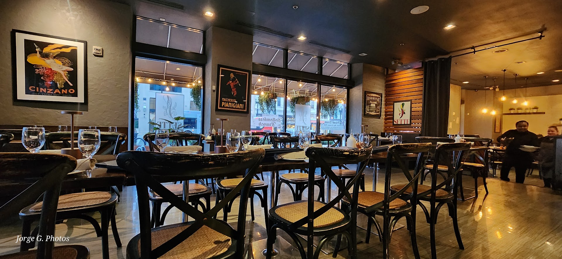 I went to sette osteria with high hopes. However, it was a horrible experience from beginning to end. To begin, when we arrived to our reservation, there was no one at the host desk, and we stood there for a solid 5 or so minutes before anyone returned. Several employees made eye contact but none of them greeted us. Finally, the hostess came and seated us. We waited almost 10 more minutes before our server came to greet us. As we were on a bit of a time schedule, and because we had so much time before the sever came, we ordered our drinks and food at the same time. I ordered a dish with a New York strip steak, rare, (I believe it was on the specials menu) and my date ordered a Cacio e pepe (a pasta dish). While waiting on the food, the old fashion I ordered arrived. HORRIBLE! There was so much muddled cherry in there the drink had a strong red tint and looked like diluted cranberry juice. There was a huge orange wedge in there (supposed to be an orange zest) and small chunk ice, and by the taste of it, it was missing aromatic bitters. Given how long it took to get the drink, I opted to just drink it, but was not at all happy with the flavor.