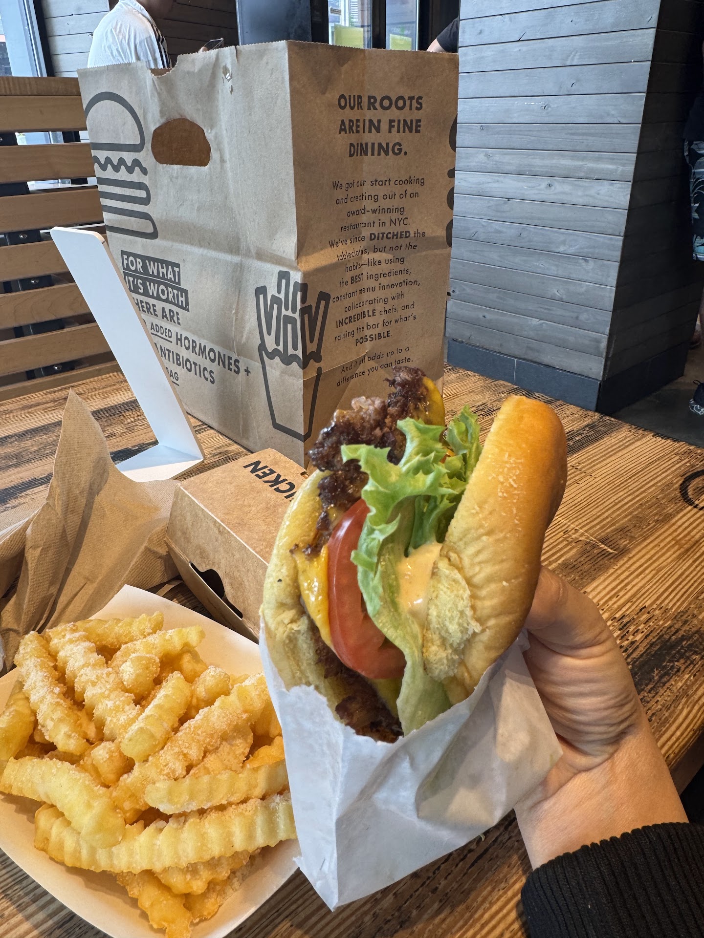 Read moreIf I could just take a minute. I said when we left that I wouldn’t go and leave a review, but I feel like it’s soo necessary. My husband and I and some of our family took a trip to DC this weekend and decided on Friday to walk around the Wharf. We were going to get seafood, but we decided to get Shake Shack instead. My husband has a dairy allergy, and also doesn’t eat mayo or cream based sauces, so I asked if he could get the cheese on the side, along with the shack sauce. The 1st time I ordered it, they got it totally wrong as they put everything on the burger, so I took it back, not knowing they had charged me an extra .50 to put these items on the side. They fixed it again and this time they put the cheese on the side and left the shack sauce on the burger. I felt so bad at that point that my husband was worried that if I took it back again that they would mess with his food in some manner. The people in the back cooking already had a whole conversation about my order while I was standing there, and you could tell they felt some type of way when we brought it back the 1st time. I really didn’t want to have to leave this establishment with a bad review and I even went out of my way and PURCHASED (on top of the two that I had already purchased) another burger just to see if they would get it right, and this time they just said forget it and put everything in separate containers they didn’t even bother to put the ketch or mustard on the burger they threw the packets in the bag (which was much better, but not what I asked for). My husband didn’t eat it though, for the fear that it had been messed over, but I wanted to give them the opportunity to get it right...just an FYI they still didn’t get it right after me paying...
