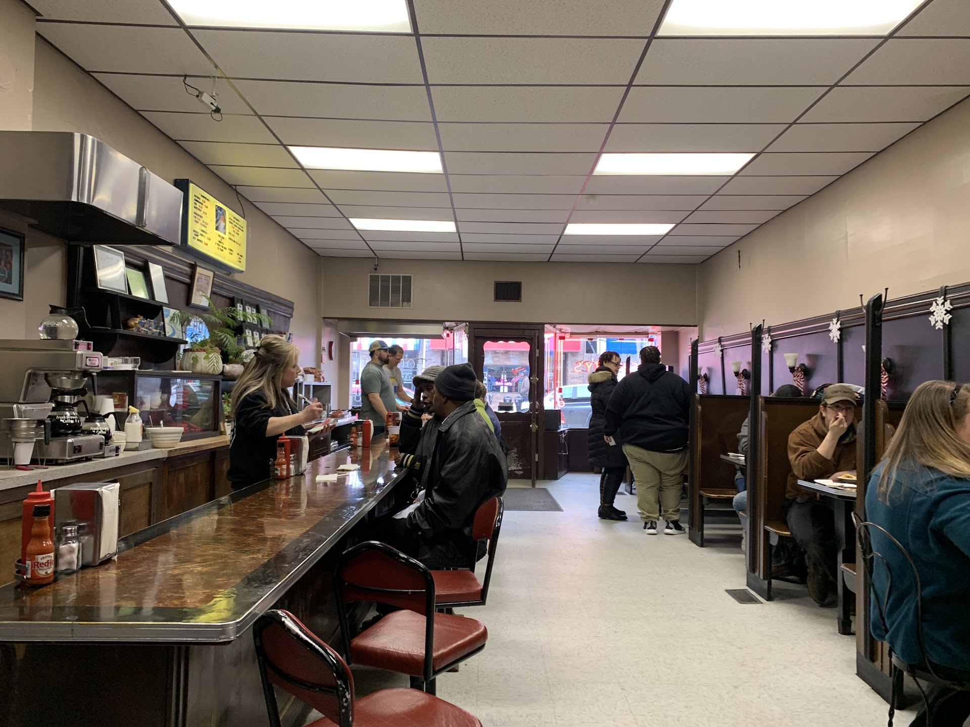 Read moreIts a cute place with good friendly service but the food and space needs updating and improvements. I sat at the bar and ordered two chili dogs with fries and gravy. The food unfortunately is...mid at best; the fries and dogs tasted like what you'd get at any other cheap concession stand. No cheese on the menu too, what a bummer. Overheard construction workers ordering and asking for it. Missed $$ opportunity imo because I would've ordered cheese dogs as well. The original 1930's wooden booths, trim and hardware around the shop are interesting but the peeling and bubbling wall paint and dingy menu are signs the place is way overdue for a renovation. There was also no heat on inside, chilly dining meant I ate fast and left. I appreciate their energy for the legacy of the eatery but its a shame that same energy isn't invested back into the overall...