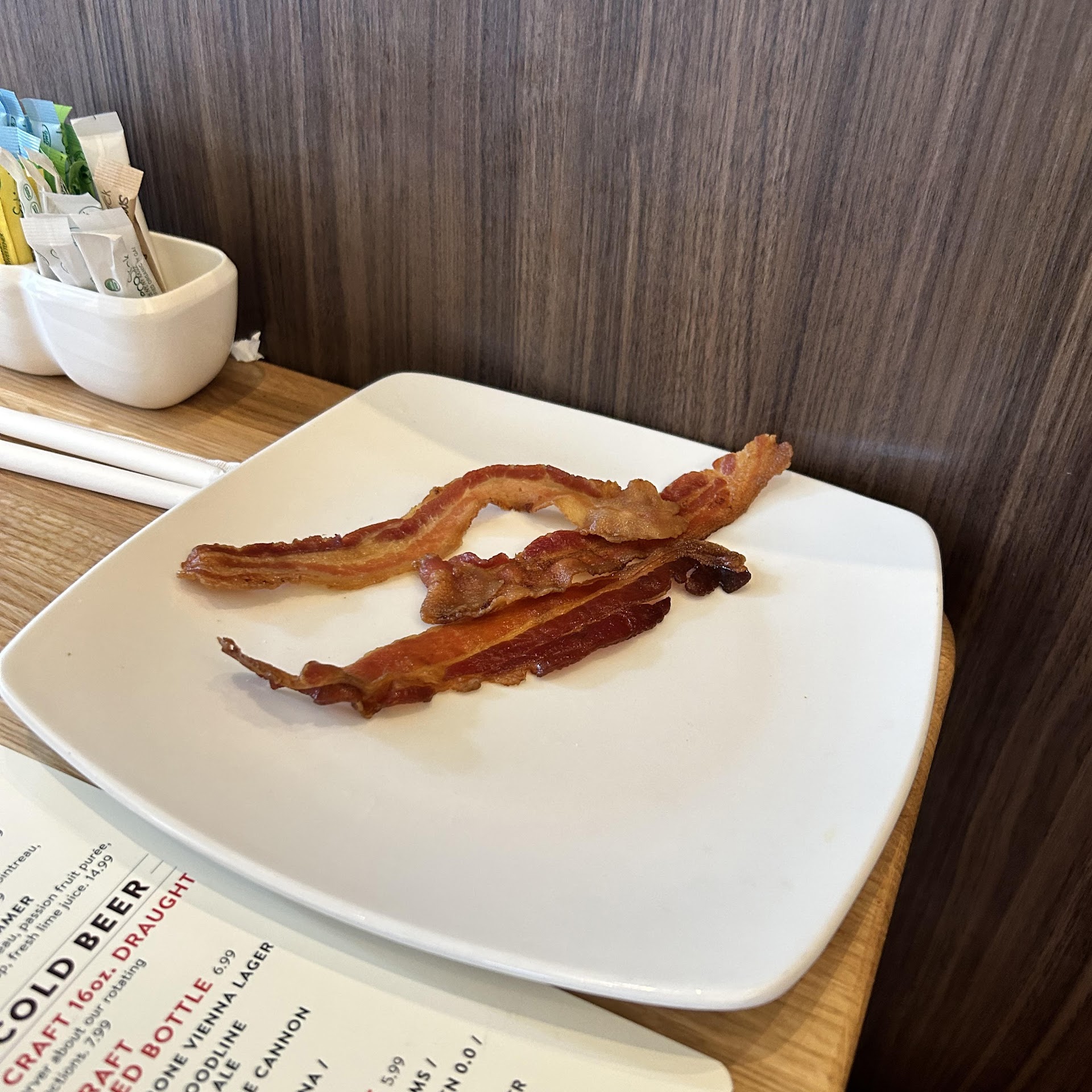 Read moreFirst and last visit to this location. The hospitality of the staff needs serious work. We were seated promptly and received a friendly greeting from our server - off to a good start, but things quickly went downhill. Immediately after bringing our drinks and taking our food orders, our server went on break and nobody was assigned to our table in his absence. What's worse is that the "employee break room" is in full view of the dining area / guests (see photos included below, faces of staff were blurred for privacy) which was very disruptive to our dining experience since we were seated directly next to it and some staff were talking, laughing, and complaining / arguing loudly. Our waters ran out quickly, and nobody came to refill them. I was in eye sight of our server who was in the "break room", and watched him gesture to the coworker seated next to him to get our food from the kitchen. By the time it was brought over it was room temperature at best, and I was missing one of my items - a $5 side of bacon which looked small, floppy, and pathetic (also pictured below, which was noted to management and "fixed"). We ended up having to request our drinks be refilled. Throughout our dining experience my girlfriend noticed an up-charged item for her sandwich wasn't present. She also found a hair in her fries. When she went to the restroom, she witnessed a kitchen employee in uniform blow her nose and neglect to wash her hands before exiting the restroom. By this time our original server finally returned from break and cleared our plates. He didn't ask if we wanted any more drinks, dessert, or even our check. We ended up waiting over 15min before having to request our check (our server had passed by our table multiple times during this period and saw us with our coats on and my wallet on the table). The only positive was that our food was decent. Overall it was a very disappointing experience of a well established chain that recently opened in...