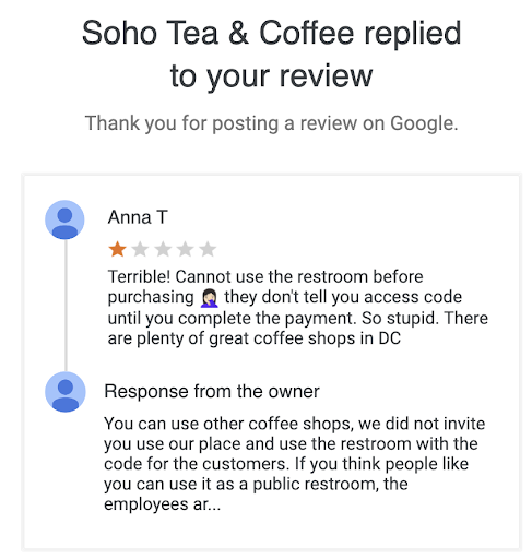 Read moreUPDATE! I was not wrong about rating this place with 1⭐️ I received a notification about the owner reply (eventually, it's removed, and I don't see it publicly), but please enjoy a "pleasant" response. Just one thing I want to mention is that people sometimes want to use the restroom before placing an order, and not waiting until yours ONE, only one working associate will finish serving other customers. Not to mention that I visited with the baby. I Hope some customer success training will be completed, including the owner 🤣🤣🤣 Terrible! Cannot use the restroom before purchasing 🤦🏻♀️ they don't tell you access code until you complete the payment. So stupid. There are plenty of great...