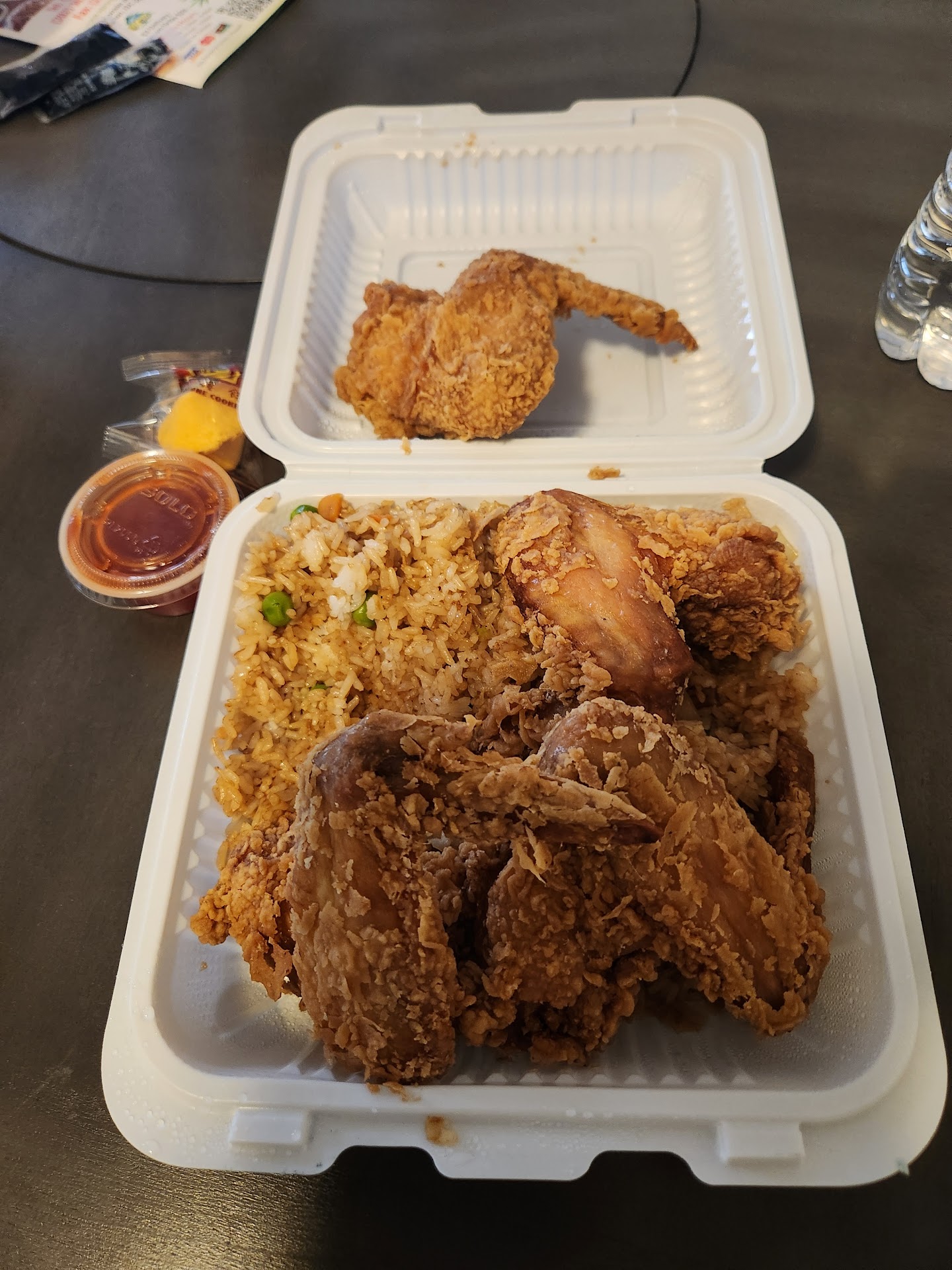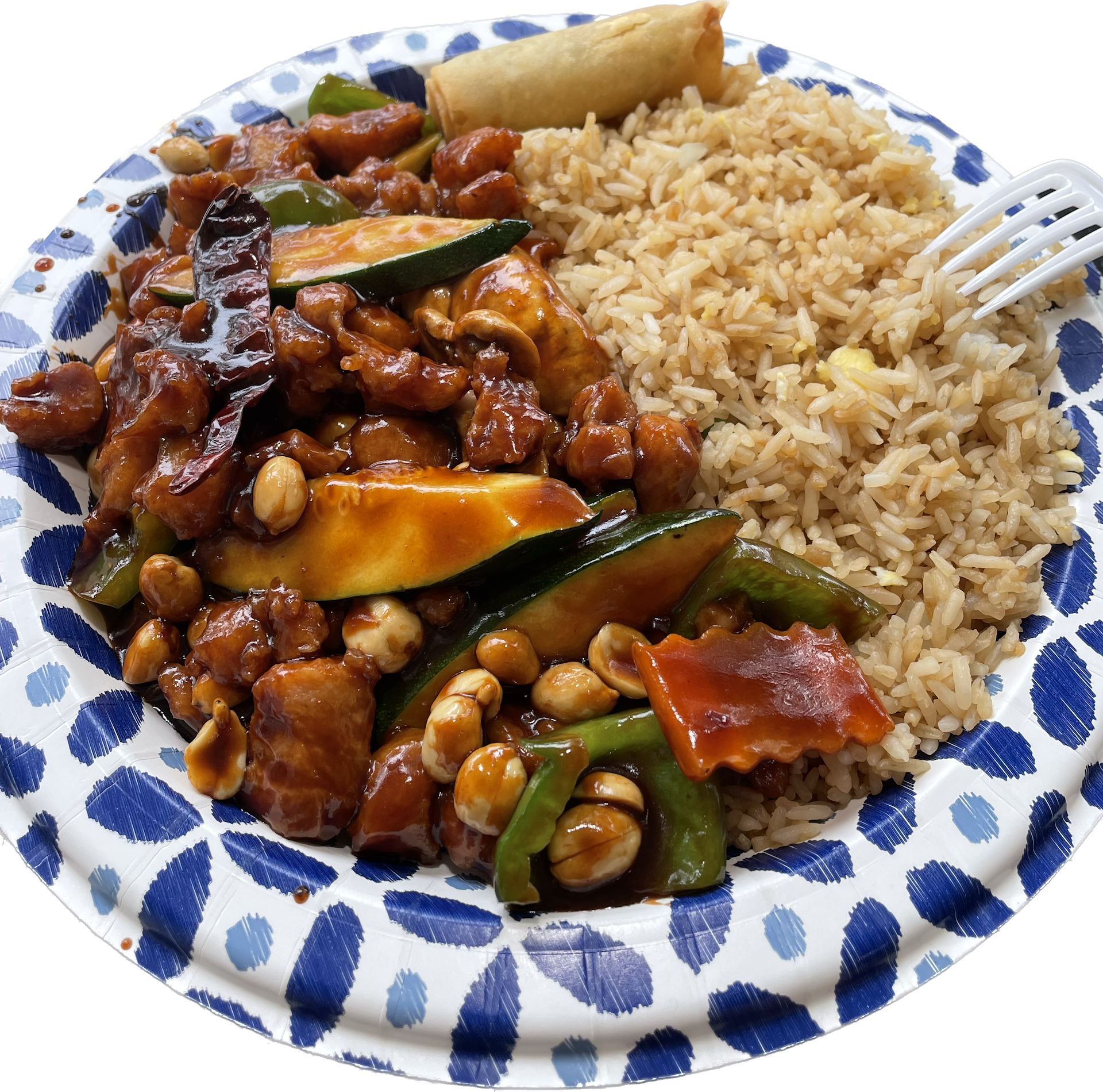 I ordered the kung pao chicken lunch special, which came with a mall spring roll. The rice and Jung pao filled large paper plate full. Rice choices were white, fried, brown ($1 extra). I appreciated the kung pao with savory but not overtly spicy sauce, plenty of chicken and a generous mix of o vegetables, nice pieces of zucchini, carrots, green pepper and mushrooms.