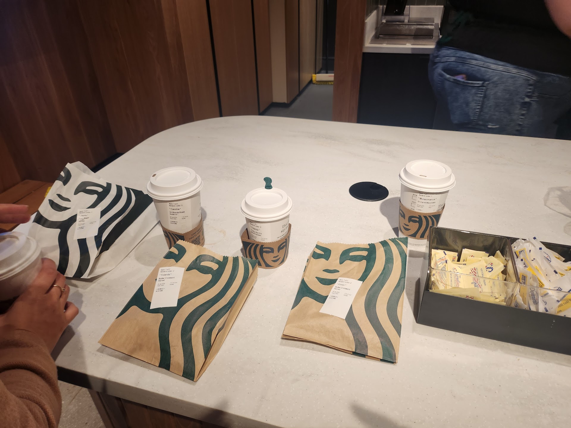 In terms of the drinks and food, they were consistent with what you'd expect from any Starbucks location. The quality was on par with the chain's standards, which is always a reassuring factor when you're craving your favorite Starbucks beverage or treat.