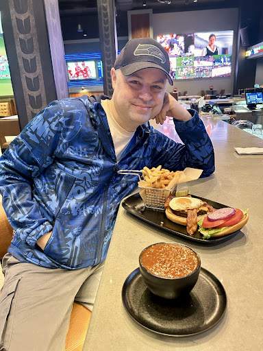 I ordered the steakhouse burger but there were limited low carb options on the menu (which is fine its a sports bar) so I asked what the seasonal veggie was. Was told peppers, carrots, and beans. Opted to swap my French fries for veggies.