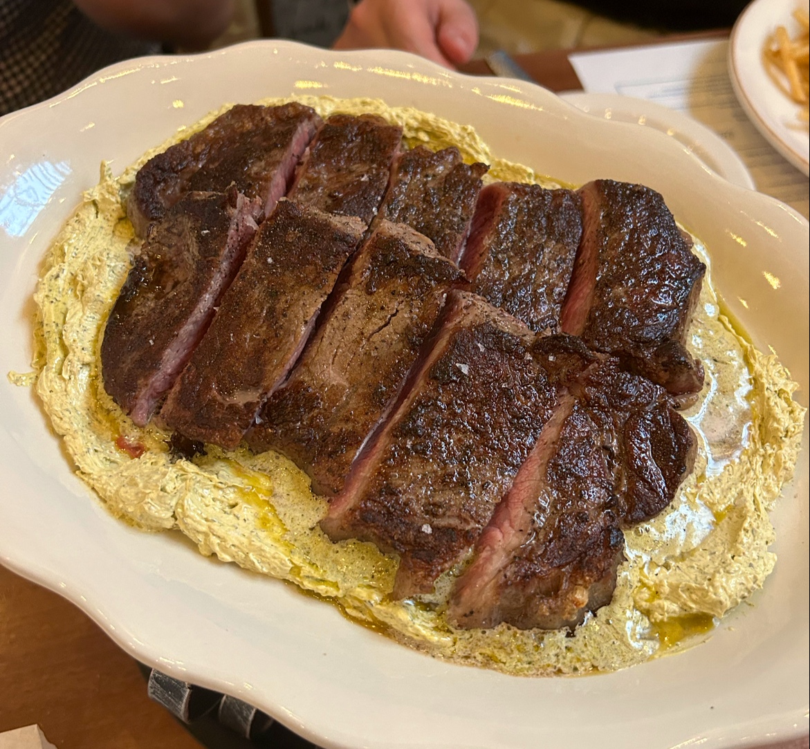 For the main course, we both ordered our steaks medium rare. My friendās came out perfectly, but mine leaned overcooked, likely because of the at-the-table open flame. The fries, however, were excellent, crispy and seasoned just right. I just wish I enjoyed my steak more because thatās really the centerpiece of the meal. Personally, I donāt think the open flame gimmick adds much, and Iād rather have my steak cooked precisely.