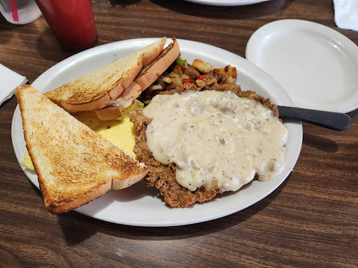 It was an ok place to eat. I think the customer service could have been better. We had to constantly flag her down to fill our drinks. She dropped the top of my husband's sandwich on the floor, but they quicky re-made that part. She also did not put his order in at first so our food took very long to get to us. I had the chicken fried steak breakfast. The eggs and hashbrowns could have definitely used more flavor it was bland. And my husband said he was disappointed in the blandness of his sandwich. We probably would not eat here again, and the amount we spent we could have gotten better tasting food and service elsewhere. We also noticed that they had not cleaned their outdoor eating area. There was dirty dishes on the table left there for who knows how long. So yea the cleanliness could have been better. Also, no changing table in the women's or men's bathroom. We had to make shift a sanitary...