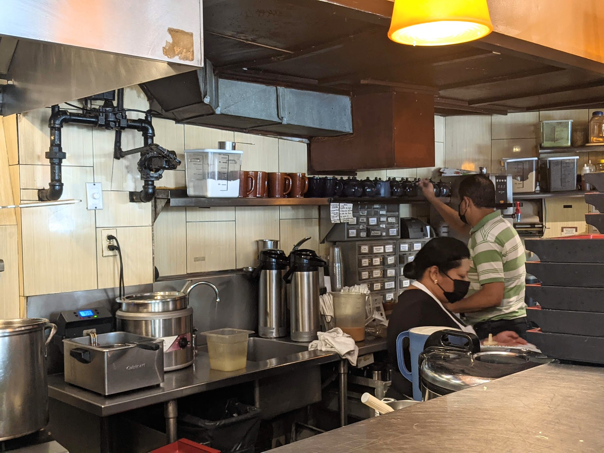 Read moreDefinitely I don't recommend this place. It's so dark inside this place. Everything felt moldy and dirty. The walls paint is like a century ago. Food! I didn't like at all. Sandwich was horrible tasted so weird and was salty. Meat on it was dry dry ... i don't know how to describe it. I just really didn't like it. Definitely never going to try other things on menu specially with the attitude i recieved from manager. I ordered a drink beside my sandwich. I didn't realize it was full of ice and i was having my not delicious sandwich on the upper floor. I didn't want to leave my food to get cold to go back and change my cup of drink full of ice. So i finish my sandwich, i took the cup full of ice and i talked to employee which she called her manager. You imagine 2 /3 of cup was ice. By time i ate my sandwich and got to cashier 1/2 was ice because some of it was already melted. So i ask manager for refill, they refused. Ok. That is fine. And i said i want on half of cup to be refilled because i paid 3.50$ for this drink so more than half was ice. I don't say give me a full cup just give me half refill so it is what i paid for. Manager: "sorry, this drinks are homemade and expensive and I can't refill even half of the cup and you have to pay in full for another drink"! . I really didn't appreciate how they put their profits over customers satisfaction. Apparently they don't care. Well my advice to you dear reader, check that you don't pay for cup full of ice and you actually pay for the drink. I realized a bit late. It was my first time here. I very much regret it. . Also, the side of sandwiches you order, got no options except cucumbers that come in a small bowl with spicy sauce. I have never been to a place in my life that give only cucumbers as side of sandwich. I very much regret my visit here. Bad day, bad choice. You...