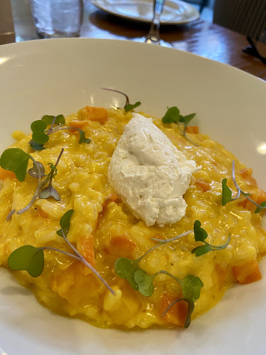 Food: Carrot Risotto ($29) The better of the two dishes from the night. Made with lemon ricotta, pistachios (removed due to my tree nut allergy), and carrot top pesto (server confirmed no nuts). It was rich and flavorful, with the lemon ricotta especially shining. Portion size was just right since risotto is filling. Maryland Crab Cake ($30, single) Underwhelming for the price. The crab cake itself seemed small, hidden under a heavy layer of remoulade, and plated between two piles of corn, which felt like a cheap filler. Not worth $30.