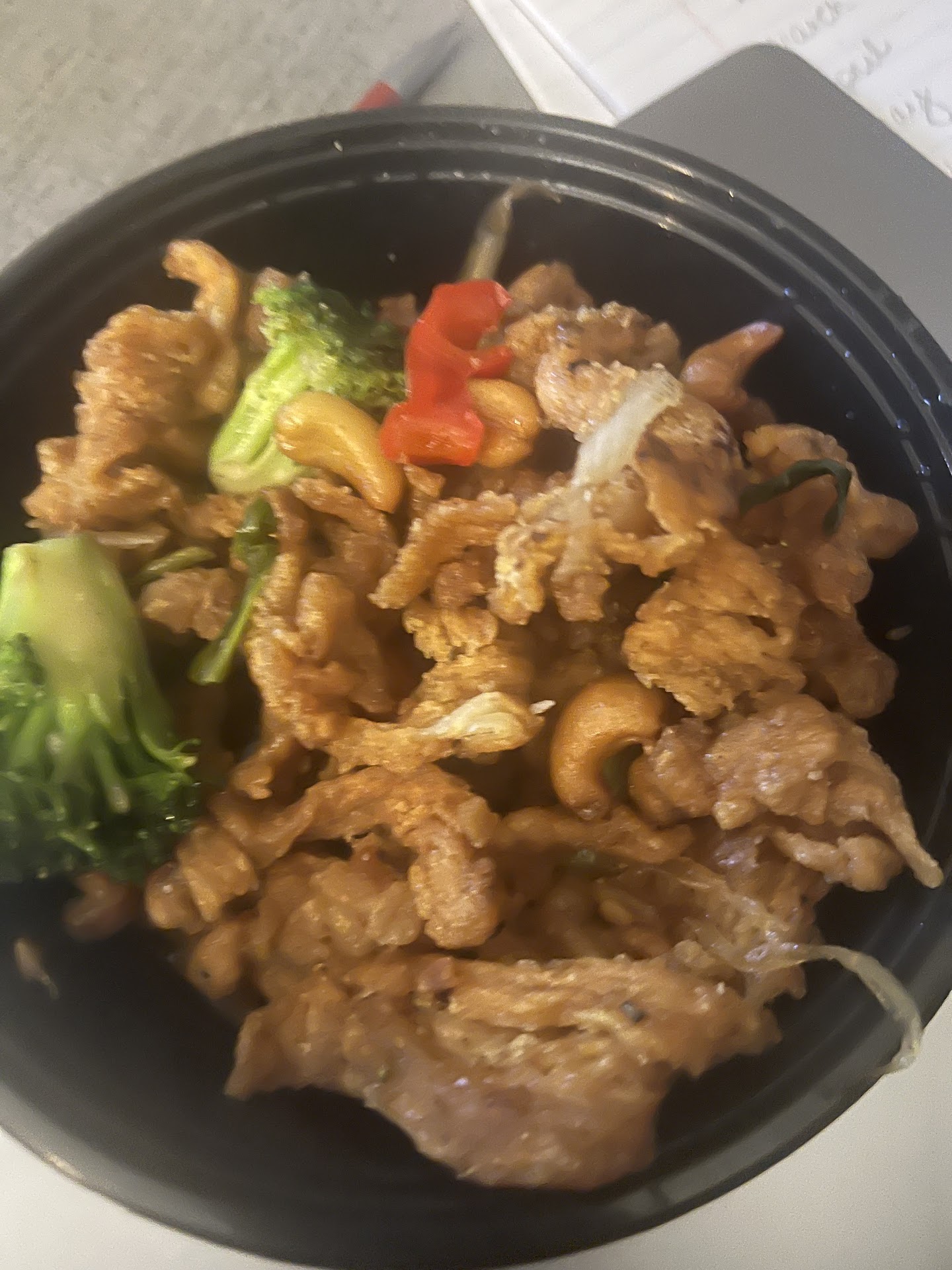 I called the restaurant and spoke to a man who picked up the phone who told me that what I described was in fact how cashew chicken was made. I’ve had cashew chicken before at the restaurant and others and I’m offended that instead of acknowledging that I was given a meal of bad poor quality, I was told that crunchy chicken skin fried hard is what cashew chicken should be. I was offered no refund or credit but told that I should ask for it in the future to have more sauce ..I refused to eat is because crunchy fried pieces of chicken skin is NOT cashew chicken .. what I did taste was disgusting