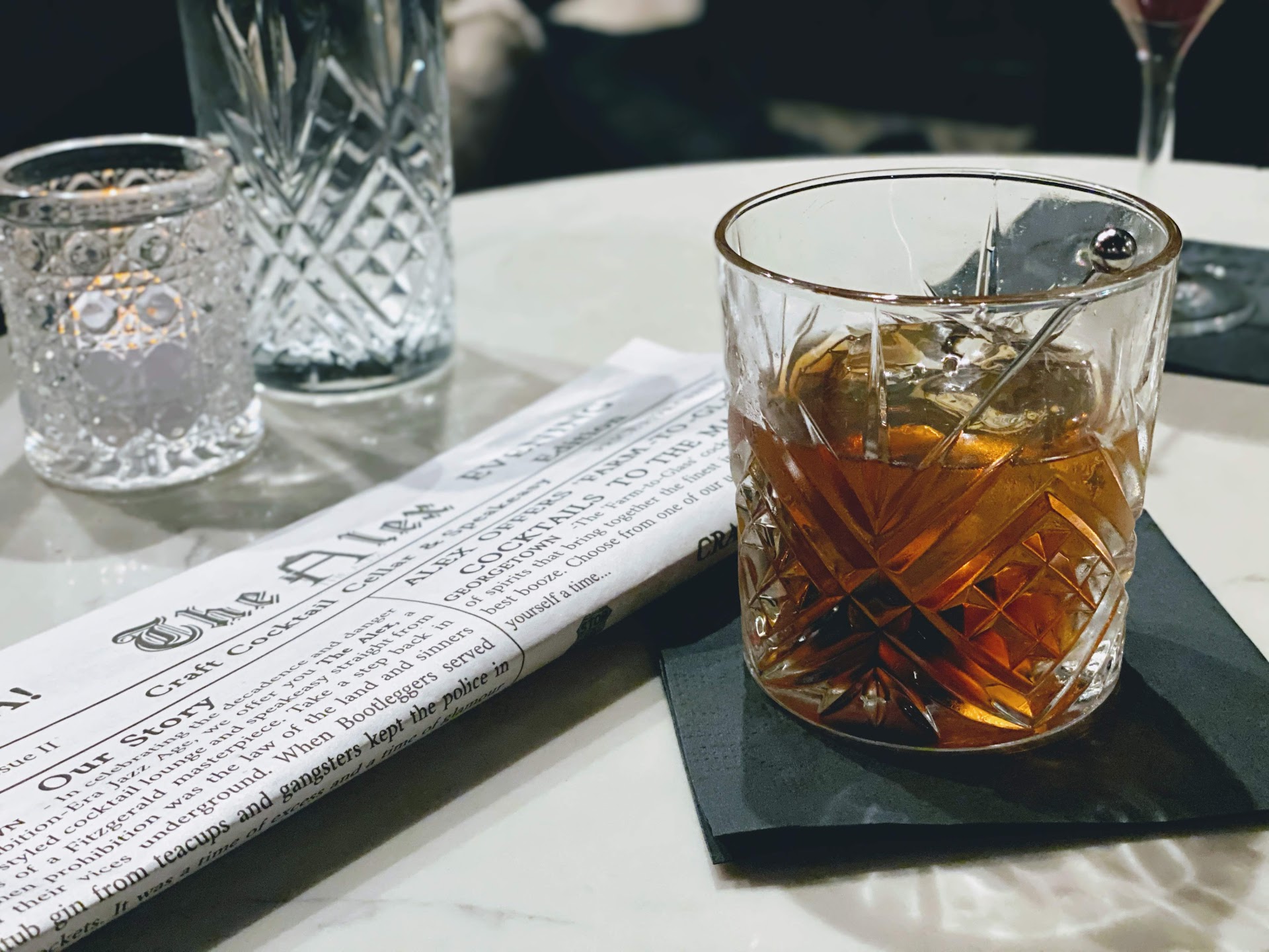 I had high hopes for this speakeasy with its prohibition cheek vibe and intriguing black and white newspaper menu. The service is really disappointing as the waitress refused to seat us and pointed to the bar even though there were open tables. A few small tables had Reserve signs, but no one sat there from the time I came to when I left. When I saw a small open table that didn't have a Reserve sign, I asked the waitress if my husband and I could grab it, and she grudgingly shrugged, so we took it.