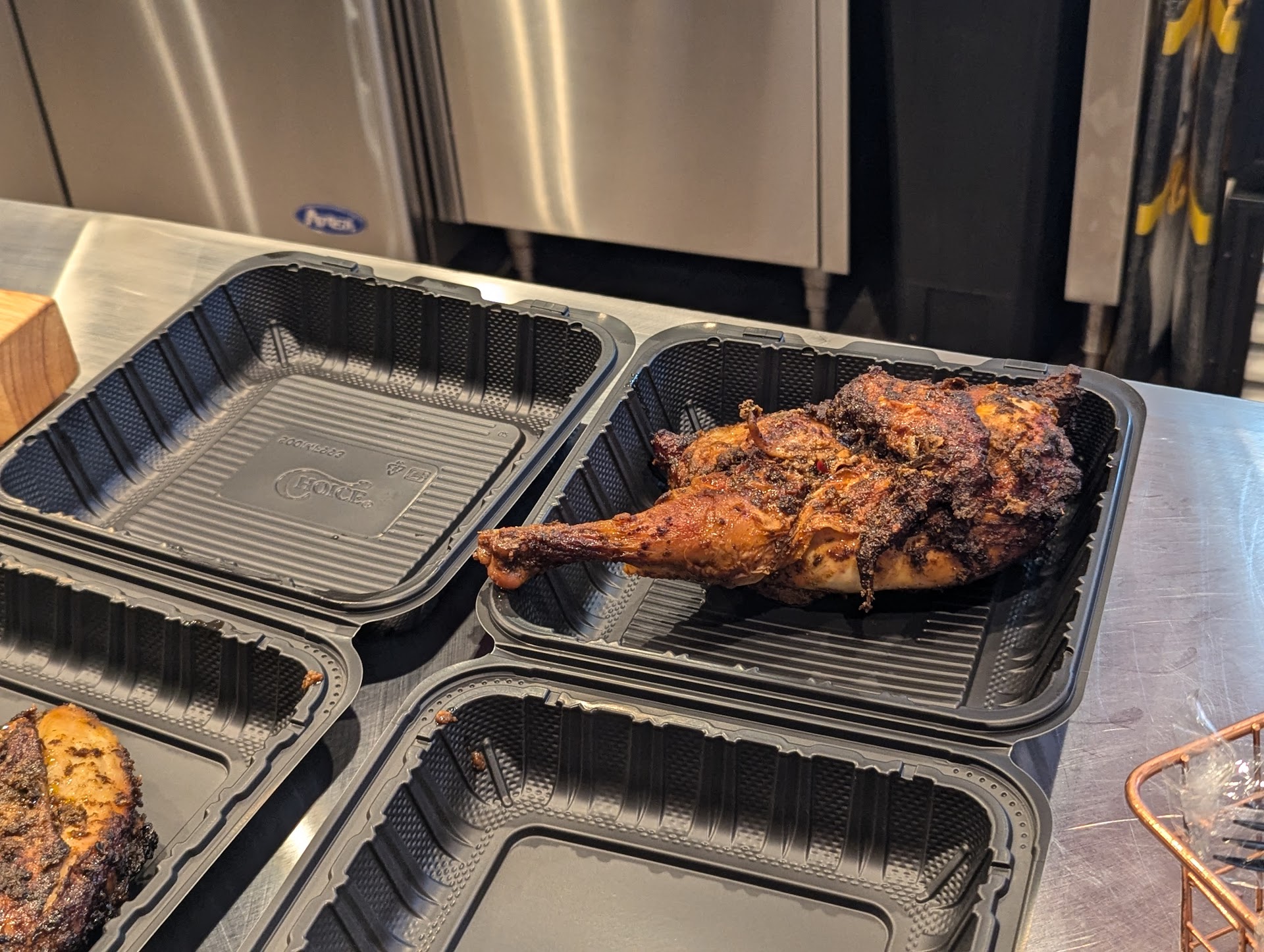 Read moreThe hype on tiktok was truly overexagerated. They claim to be authentic, and by no means is this any real Jamaican jerk chicken, driest chicken I've ever had, they have 2 sauces for jerk, neither are actual jerk sauces. It tastes like something a Gordon Ramsey wannabe would mix up random sauces they found at Walmart and called it jerk sauce. if you noticed, 3 plantains was all I was given for a $20 bowl of one pathetic scoop of rice and peas, they give you some random toppings to makeup for the fact that they don't even give you a child's portion of rice and chicken. Spent $40 for 2 bowls, one Jamaican soda (which was not free like they lied on tiktok when they advertised that if you come in saying you heard about them on tiktok that you would get a free drink!) When I said mentioned that ad on tiktok, the cashier sucked her teeth and proceeded to charge me for a Jamaican soda. Then they claim to give 2 free sauces yet that same rude cashier charged me for 6 half filled containers of sauce that they charge $0.75 for each. Photo below showing how they fill these containers halfway. 🤦♀️ this restaurant is not Jamaican and should be called "wannabe Jamaican, we tried...