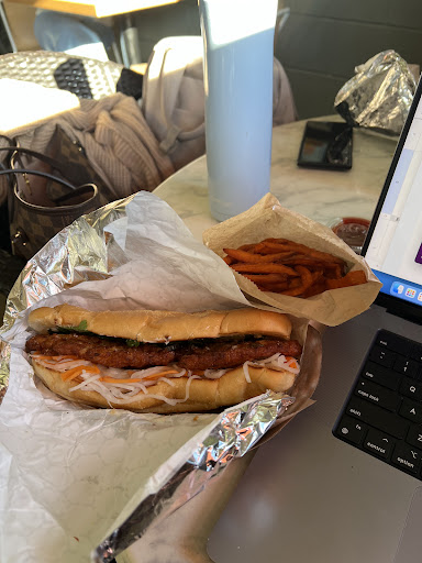 Read moreEdit: Not consistent. I’ve had to edit this review down because I went back to this spot to get the shrimp bahn mi for a second time. The sandwich was not very good, the veggies were soggy and disproportionate to the shrimp, and again the cilantro is packed in bunches into the sandwich with the full stem it’s almost inedible with it included. Sweet potato fries are still good with a spicy mayo. Has the potential to be good but is not there yet.
