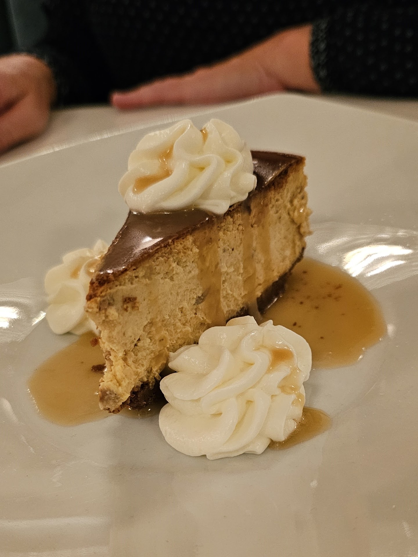 Dessert arrived and while ok, it was not what you would expect. My buddy, who knows food, felt his cheesecake should not have been called a cheesecake. I felt my brownie would have been much better warmed, not cold.