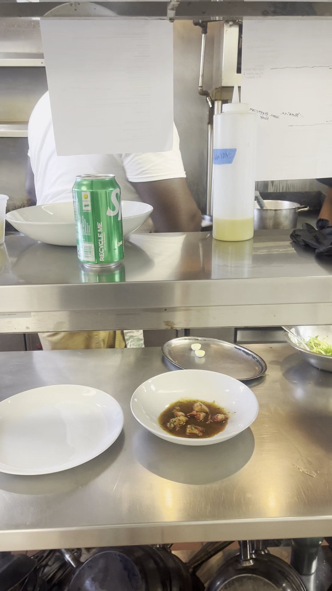Course 3 arrives: I again ask for water. TINY plate of food. Pork loin is one small piece of loin, catch of day is tiny piece of swordfish with three muscles (2 not open) and the 2 orders of quail are just one quail each on a tiny bed of rice. Taste and flavors very well complimented. This is when we started discussing getting a pizza on the ride home. Asked for another bottle of water.