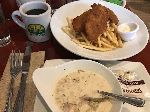 The cod was very good and my son thoroughly enjoyed his Impossible Burger. I had a bit of traveling-all-day brain or mind-set so I didn't think to verify if it was truly impossible but he had no trouble eating that, drinking an amazing root-beer and oh man mouth watering clam chowder. Had I known I would have just had the chowder ...soooo good!!