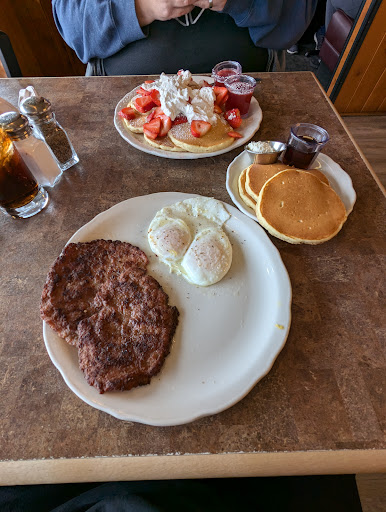 Read moreLet's just start off with the fact that the kids menu goes from 7 to around $8 in price without drinks and all they get for that type of price is three pancakes and a couple pieces of sausage or bacon if you're lucky. Also the pancakes even though it is stated that they are buttermilk have a sourdough starter. My children love pancakes and love waffles and they were disgusted. My toddlers waffles were so tough her could only handle 2 bites. Now all of them feel sick to their stomach and I'm worried about what this evening is going to bring with all four children feeling sick. I got the chicken fried steak and being that my dad raised me on Southern food I have to say that was the worst chicken fried steak I've ever had because it was tough and tasteless while being too much pepper. I'm now feeling sick to my stomach and trying not to vomit. Also for your potatoes they only have two condiments ketchup and hot sauce. My husband got the bacon platter with thick bacon and it was dry stringy and tough. He couldn't even bring himself to eat the eggs because of how much they were swimming in grease. Also for the size restaurant they only have two stalls in the women's bathroom and one stall in the men's. Hot Cocoa is $3.30 each and as I said none of the meals come with drinks. After I demanded to talk to the manager a girl showed up that I could bet was maybe early twenties was not dressed for her position nor did she have a customer service attitude even though I was being nice and just informing her that the menu needed to be a bit more informative and that we had issue with the food. She was only willing to call the cheapest kids meal and if it wasn't for the fact that we had vouchers for two of the other kids that had gotten awards at school I probably would have lost my mind. We will never be back and we will make sure that anyone that we talked to we will inform them of our experience as well as showing photos. My family has never been this sick and nauseated after a meal at any restaurant. It was terrible enough that I left the left overs at the table because I was too fearful to share them...