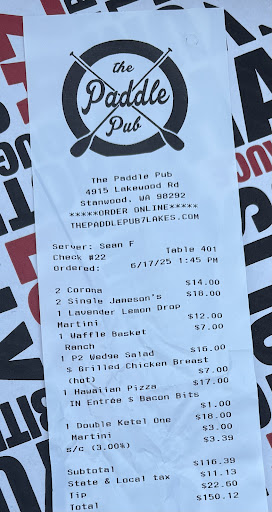 I've been spending my free time on lake Goodwin for the better half of 5 years always getting food at the paddle pub take out or dine In and I've never had any complaints with there food but there service I can't say the same i went there last night with my friends after a lake day we sat In the bar as the dinning room was closed witch shouldnt be a problem because all my friends are in there 30s and I am 21 years old the youngest and apon are waitress arriving at the table is we're everything went south I was told to leave because my ID is vertical witch last time I checked is still a valid ID but in stead of having a conversation and coming to a solution we were extremely mistreated by a very disrespectful waitress and we were told we snuck in when the workers held the door open for us and then they said they don't recognize us and kicked us out after we explained all we wanted was a couple of waters and some nachos and didn't want any alcoholic beverages and what really tipped me over the edge was the fact that I can't even count the amount of times I've sat at the bar and been served beer and shots with my vertical ID senec I turned 21 in December and i undertand there's rules and plan on getting a horizontal ID but that dosent excuse the poor behavior towards me and my friends that were being totally compliant and respectful it's really sad to see what once was one of our favorite places ran to the ground by terrible service and as of now I don't see me or any of my friends going back and I will make sure to spread the word of the service to...