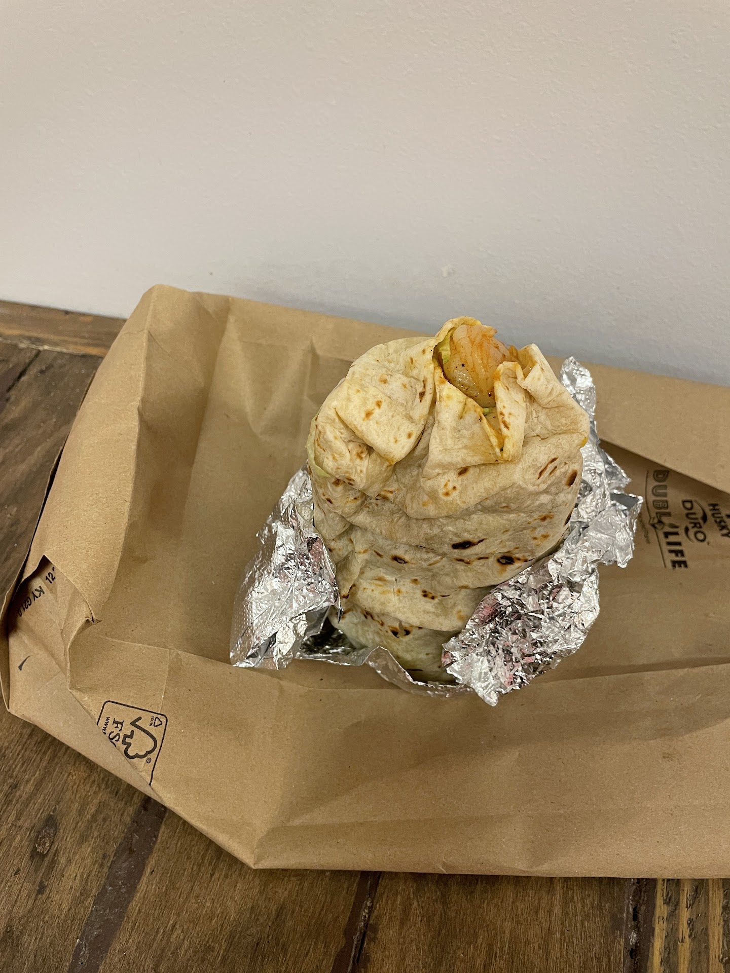 I ordered the grilled shrimp taco with mild salsa and all the fillings- lettuce, tomatoes, grilled onions and peppers, etc. It was good, but I wish I had requested rice to fill in the burrito more.