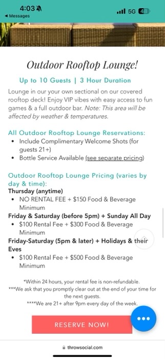 We ate our food and drank, meeting the $300 minimum we thought we saw online. Then the staff told us we needed to pay $450 in food. We were all confused because that's not what our expectations were, but they argued we booked an inside cabana, and it is that price. We didn't even end up sitting in there because they had no AC so we didn't even get to enjoy the benefits of a more expensive Cabana for one. And second for the price we were paying, that is ridiculous. Sitting outside was not much better at ALL. We showed them the website and our booking; nowhere did it say $450 minimum. Then they asked the cardholder to talk separately from the group, which we thought was weird. My friend came back and said they had stated they would do the $300 food minimum instead of $450 if we tipped well. We agreed and said okay (even though it should have been $300 in the first place because we ended sitting outside and the conditions were not up to standard). He went up to pay, and they rang his card up. This is where we messed up and should have asked for a receipt before paying. But usually, restaurants will give you an itemized receipt beforehand; you shouldn't have to ask. We got the total back, and it was $574. We were shocked! He went back up and asked the waiter, and she said, "Oh, that's after taxes." There's no way taxes are that much. Later on, he found his digital receipt (shown below), and they tipped themselves $150 PLUS gratuity, which is $85 (totaling $235). THAT IS AN 80% TIP OF OUR FOOD ORDER. Absolutely ridiculous, and we feel completely scammed by this place. The food was mediocre, and the drinks were okay. For the price we paid, you can get high-quality food and ambiance somewhere WAY better.