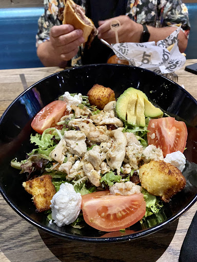 Read moreWho knew losing your money gambling could build up such an appetite! Unfortunately, we learned this while celebrating our 30th anniversary at the Ilani casino! đ Iâm not usually one for sports bars. I donât drink and I fall asleep watching most sports! But, I didnât want something too heavy, and after looking at all the culinary choices offered (thereâs a lot of choices!) we decided on Tomâs Urban. Their menu offers a good variety for differing appetites. Burgers, wings, sandwiches, salads and even a cheesecake if you want something sweet. I partook in the Rotisserie Chicken Salad and my husband chose the Prime Rib Dip. The salad was chock full of fresh greens, creamy goat cheese, sweet tomatoes, avocado, almonds and the tastiest brioche croutons the size of Texas! Well, maybe Paris since brioche is French. They werenât hard and crunchy; more of a soft and toasted texture that really paired well with the goat cheese. Very good. My husbandâs review of the Rime Rib Dip was basically, âI donât want this sandwich to ever stopâ! He even gave me a look of consternation when I snagged a stray piece of beef that dropped from the sandwich to his plate. Usually a man fine with indulging my desire to taste test everything, I knew I had over stepped that privilege when he glared at me and said, âI canât believe you did that. I was saving that for later!â After being properly chastened and apologizing, I hastened to remind him that it WAS our 30th Anniversary, so that alone should have at least entitled me to some grace for my actions. It was a precarious moment, indeed, and a testimony to how much he enjoyed the sandwich! Wannabe taste testers beware! The waiter was engaging, witty and attentive to our needs. Excellent service. The restaurant was clean minus straw papers that needed to be swept up. It was a bit loud with all the TVâs blaring, music being played and loud men yelling at the games they were watchingâŠbut, itâs a sports bar, so duh! This is not the place to go if you want an intimate, subdued meal. But perfectly fine if you know what youâre walking into. Needless to say, if you find yourself experiencing hunger pangs after losing your shirt at Ilani, Tomâs Urban is a tasty and vibrant place to satiate your wounded soulâŠbut not necessarily your wounded...