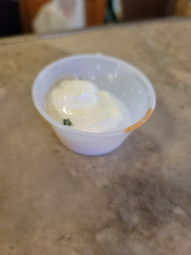 Included with our order was literally 1 tiny cup each of hot salsa, med salsa, mild salsa, (total of 3 tiny, 1/2 full cups of salsa) rotten Guacamole (see photo of brown guac) and a tiny cup of sour cream with 1/4 inch of water (see photo). Each of these 1oz cups were less than half full. These are the condiments we received to go with EVERYTHING we ordered. BTW I asked for mild salsa only and asked for extra even if I was to be charged.
