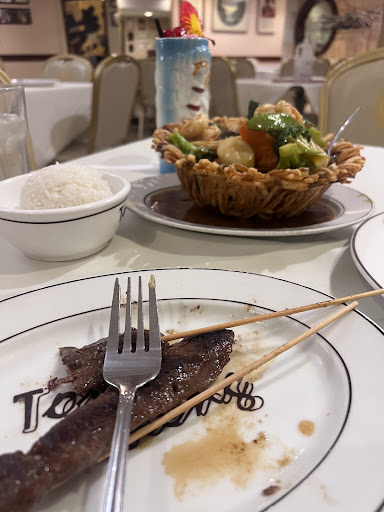 Read moreIt looks very janky out front of the building. The restaurant is located on the 2nd floor. And it doesn't look much better on the inside either. I came here alone after an art show on a Friday night for dinner, I was the only person in the restaurant and two guys were leaving as I came in. There was no all you can eat option even though its listed as such. Anyways, the entire time I dined nobody was in the restaurant except me which was fine AT FIRST because it was very quiet and just me, however I was charged as if I ordered for an entire table of people and I had to keep swatting knats and mosquitoes away. Everything was seriously overpriced but was marketed in a way that the portions were bigger or that the food had a Mongolian or Polynesian twist to it. I ordered 1 drink $16, 2 appetizers $25 one was crab and cheese wontons (which had no crab in it) and the other was the beef skewers, 1 main dish was triple delight birds nest and was $31, I thought it was something special or different since I've never had triple delight or a birds nest, heck at least from the menu it seemed appealing. My total was $95.95 a complete rip off!!!! Honestly the food wasn't bad but to upcharge my entire dinner because there are no customers (the waiter went on and on about not having customers and the mandatory included "tip"/service charge) is absolutely wrong. I can clearly see why no one was in the restaurant, I ate here years ago food was great and reasonably priced, it wasn't anything like this and I will never go back again. Do...