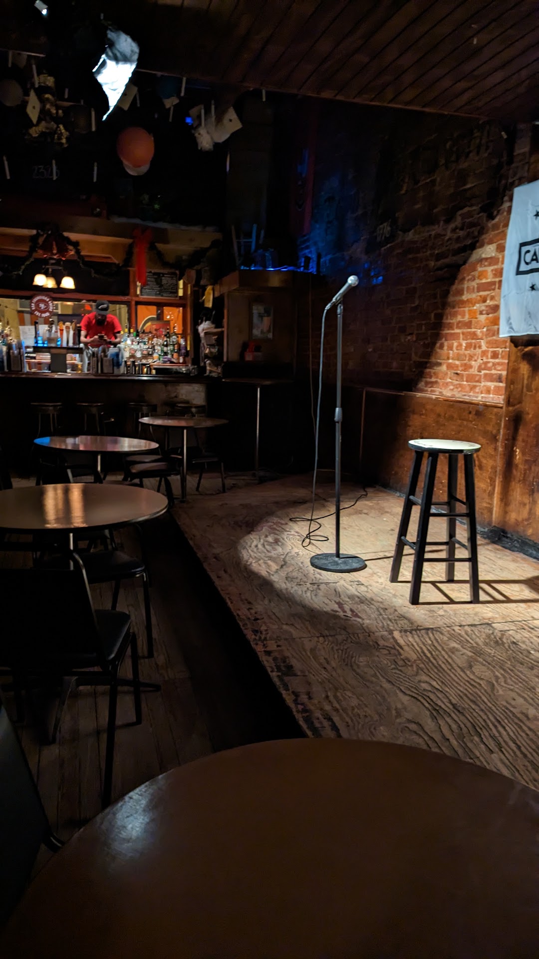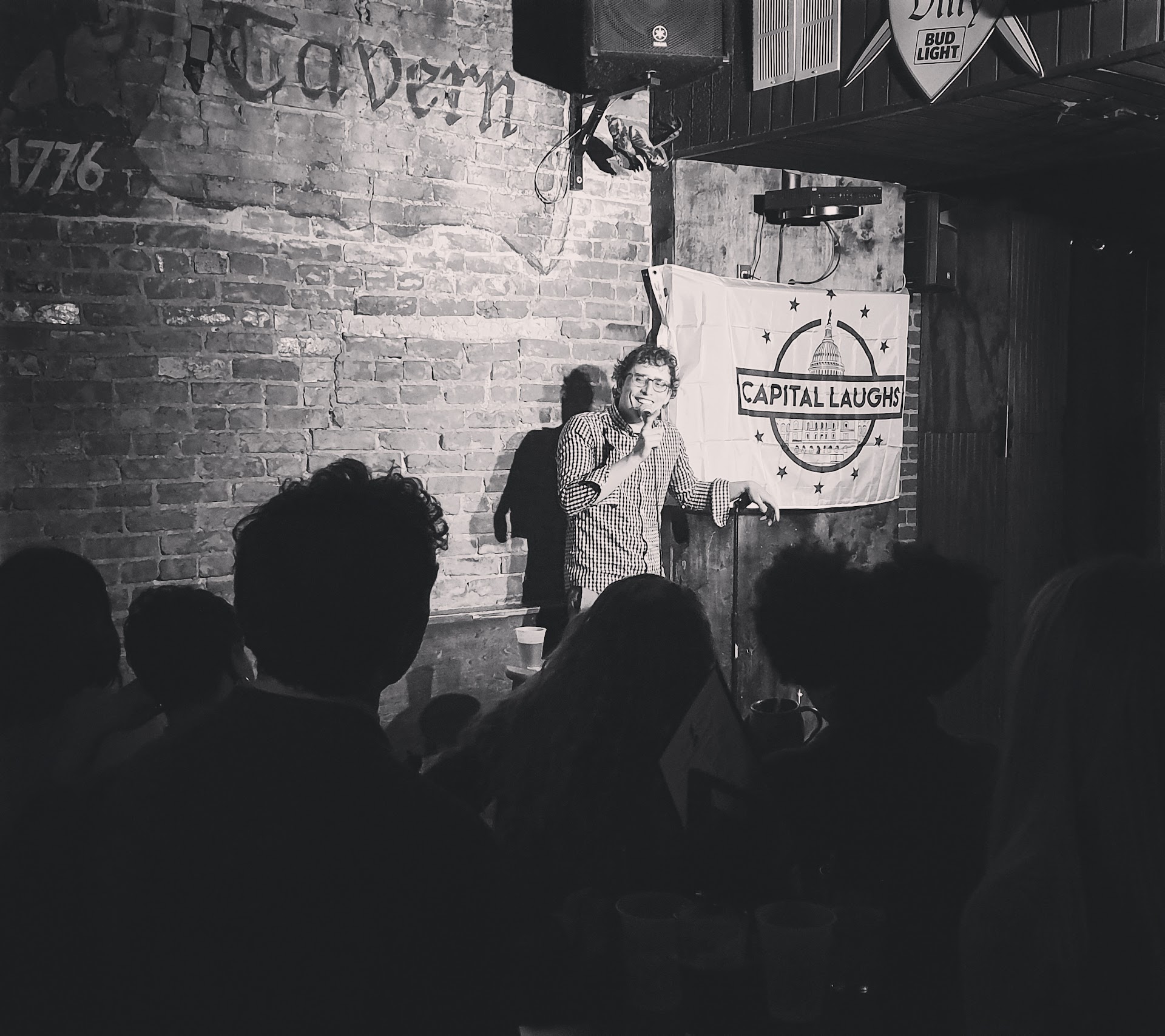 Myself and a pal took some leave from our deployment to visit DC and stumbled across this bar on our first night! We were greeted by the friendly Desmond downstairs who introduced us to some locals who all recommend the Capital Laughs event upstairs!! I couldnt recommend the Comedy enough, we didn't stop laughing all night!! Being from England we were hosted fantastically by Carl who even came over to explain an US "in" jokes that we looked confused at!! Which resulted in us laughing even louder!