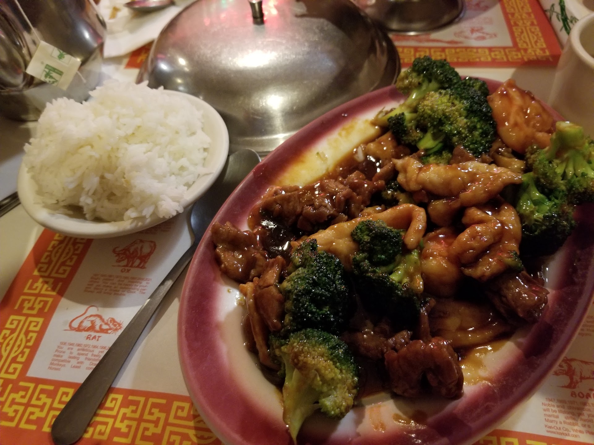 First things first, I would eat their food again and it's CASH ONLY. The dining area could use some SERIOUS updating, better tables, better chairs, better floors, and better lights. We ate in, so everything was super fresh and HOT and delicious! It was a party of 5 we ordered general Tso chicken, shrimp lo mien, beef+chicken+shrimp with mixed veggies, chicken wings, shrimp egg fu young, egg rolls, and hot tea.