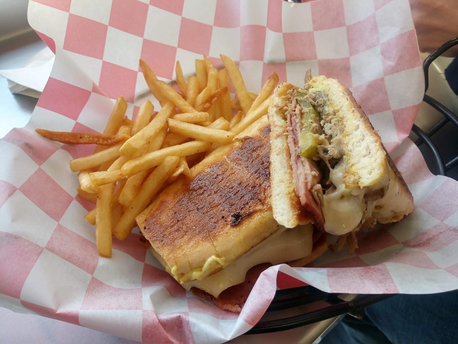 I ordered the Cuban sandwich, a coke, and asked what coffee options they had and was steered towards a cortadito. The sandwich was great. Very filling and a good profile, although the pork was more subtle than other cubanos I have enjoyed. I ordered the cortadito sweet and still found it less sweet than expected, but it was by no means bad. All of this was with two people on staff. I would honestly give it 4/5 stars at its current state, but I am confident this will be worth repeat visits once they have settled in. I'm especially excited to try the breakfast in the future, as I looked at a customer holding a bacon, egg, and cheese croissant with envy. I also want to try the burgers and the various appetizers, including...