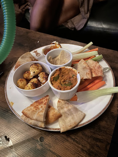 Iāve been here a few times. Happy Hour specials are great. Wine bottle was 1/2 off, the Red Blend won! The Greek salad had a nice presentation but I was surprised it was iceberg lettuce. We sat upstairs because of the hookah policy which was ok because it was spacious and not crowded. The downside is the staff is mostly downstairs and no one came to check on us and it would be annoying to constantly go down stairs for condiments so I just ate my fries...