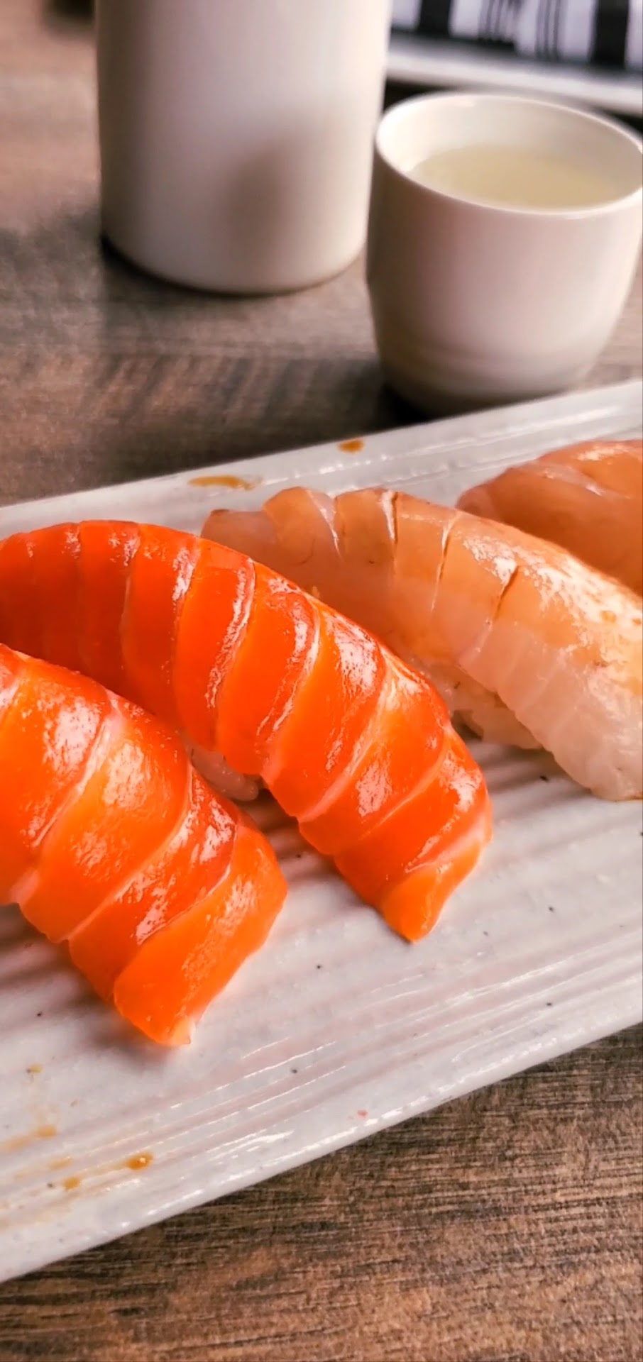 Sushi ordered: The Kampachi (Amberjack) nigiri Sake (Salmon) nigiri Unagi (Freshwater Eel) nigiri