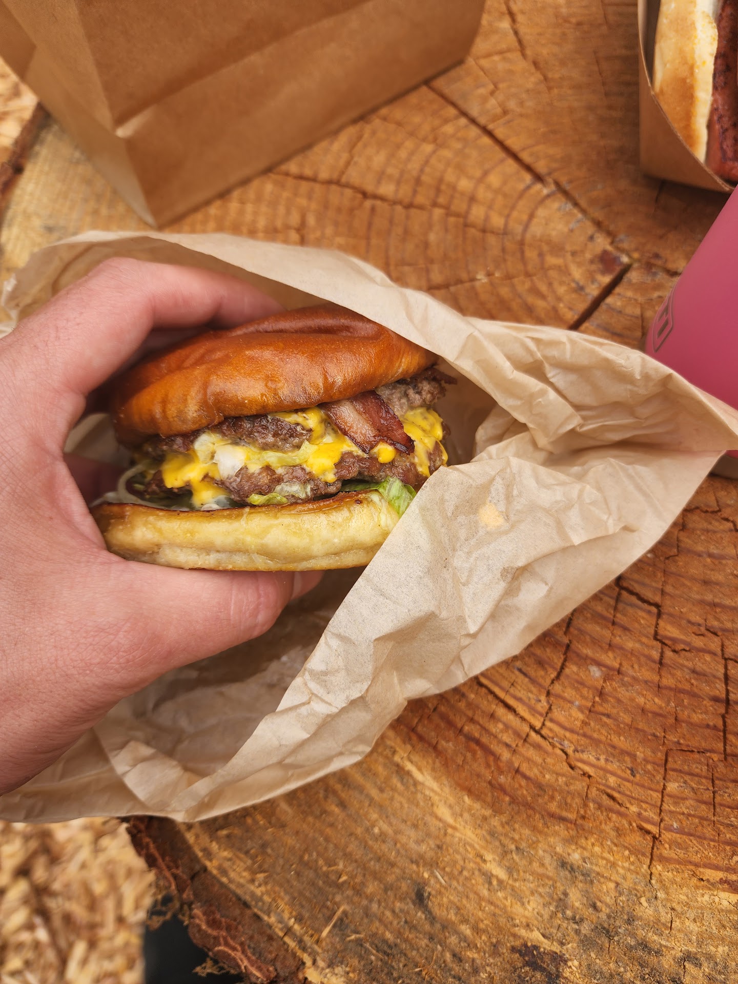 The Cravery: definitely a place to go if you are in the mood for smash burgers, starting at 13 dollars for the basic smash burger, you can select a wide variety of free toppings including spicy and teriyaki mayo. I got the smash burger with lettuce, pickle, mustard, tomato, spicy mayo, as well as fried egg and thick cut bacon at extra cost.. overall. The burger is one I would get every time i find myself over there.. combined with a friendly staff, I give this cart a solid 5 across the board.