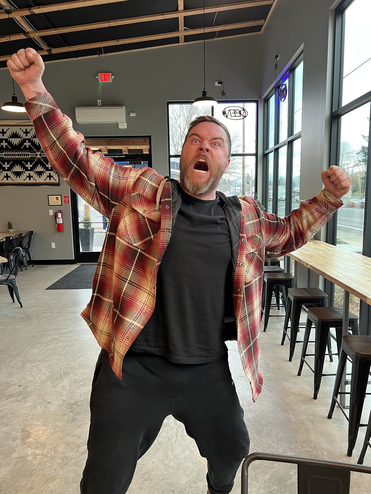 Read moreHmmm. This is a tough one. It's new, so I'll be kind and patient (constructive criticism). First off, great outdoor space (although hot in direct summer light) for kids to run around, and for families to hang out! I'm assuming they will eventually have more play options, since that is one of their main focuses (family friendly). Nice indoor seating with tv's for sports (hoping they may have Timbers/Seahawks viewing parties in the future). Beer choices are adequate, but not stellar. Major downside are the food options. Three food trucks when we were there. One was closed (Saturday afternoon @ 4pm??). The burger cart was out of most options, and only had dogs and fries left. The gentleman/owner/manager seemed over stressed, and was being very firm (rude tone) with customers. Told people "no orders for 10 minutes", so they could "catch up". Never heard of this before. Perhaps new to the biz. Bowl cart had great options, but only one person working. I stood around waiting for 10 minutes to put an order in, but the single employee was busy making orders, so not taking any additional ones. Left and came back 20 minutes later, and it was the same situation (perhaps I missed my window of opportunity?). Ended up settling for a dog and fries at the stressed-out burger cart (kid's gotta eat something). Parking lot is small, and was half filled with full-size lifted trucks, which in some cases were flowing over their spot into other spots ('Murica!). Heard a couple pull in, and drive out cursing about the parking situation.