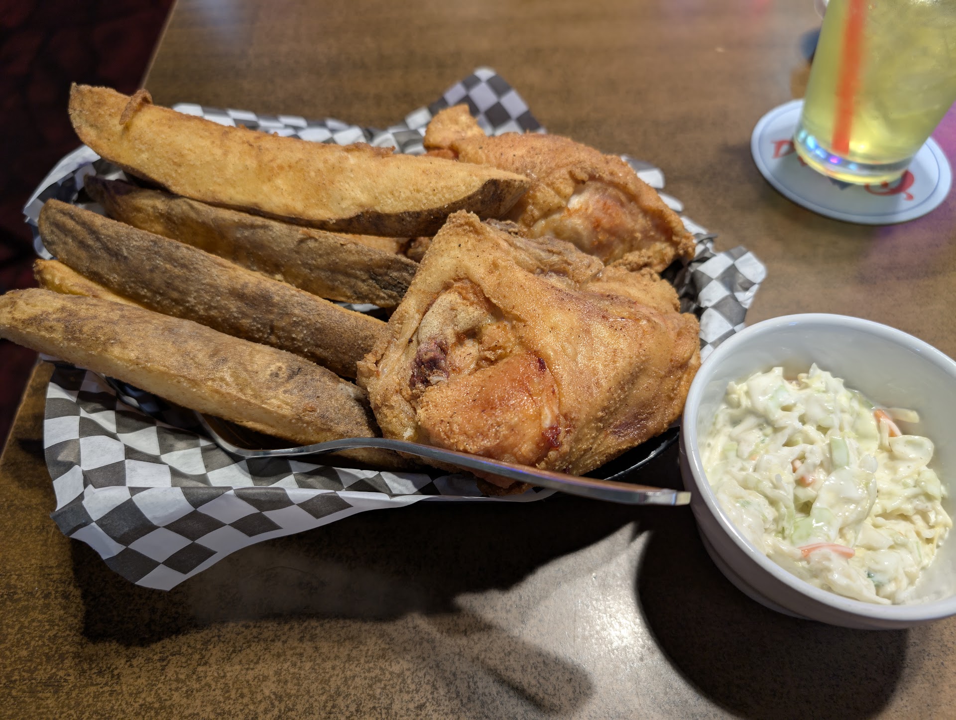 Read moreProbably the 'Shoug's oldest dive bar. We had really great and friendly service. It was "wing Wednesday", but they were understandably out of wings because earlier in the day a beer vendor was there handing out free beer samples. The promo on our table said wings were "4 for $8" and I asked if that was backwards because you would expect a good deal for wings to be "8 for $4". The server explained that each wing drum and flat counted as 1 so, in conventional wing thinking, it would be "8 for $8" and also she said they were huge, full-sized, wings and not the normal tiny ones. At any rate, they were out, but recommended their broasted chicken was the same without the sauce. Without the sauce, they were freshly prepared and very hot (temp not flavor), but would have benefited from additional flavor of some kind from sauce like their wings would get. I'll probably go back on a Wednesday to give the wings a try. They also had several draft beers including a few decent craft selections. The evening crowd were obviously regulars and locals and they were all having a great time. The beer prices...