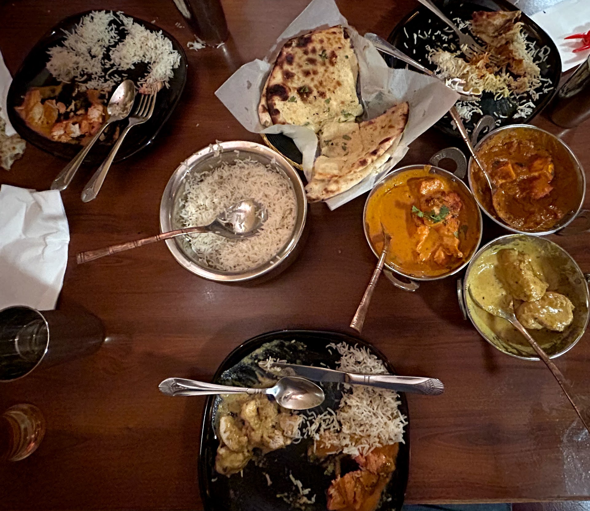 Read moreStarted with the onion bhaji appetizer. Think deep fried shredded onion “nests.” Just need larger dipping bowls. I had the butter masala and it was very close to the best butter chicken I ever had (cuz it was loaded with butter! 🧈) from Hillsboro restaurant years ago. Husband had the vindaloo which was too spicy for me. We had chicken in our dishes and basmati rice was served with both. We also had an order of garlic naan to share. We sat at one of the booths tucked into a corner by the front door (with other diners) which was a bit noisy and cramped, but they do have a larger room with booths and tables plus back room where the bar is at with more tables. The staff was friendly and checked in on us at the right pace given the to-go orders he was also dealing with. We’ll be back for dine in or take out...