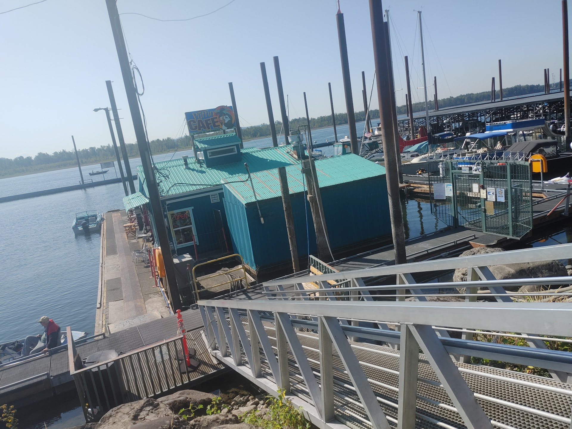 If you aren't aware of the Puffin Cafe, it's likely going to fly under your radar unless someone tells you about it, because it's kinda hard to find. This "floating" restaurant on the Columbia is nestled away at the Port of Camas & Washougal, and is surrounded by the marina, port authority, a boat launch, etc. The road that leads to it is more like a driveway for riverside businesses and warehouses, and parking utilizes spaces up the hill from the cafe, past the RV/boat trailer lot.