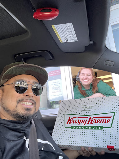 Krispy kreme is supposed to be an experience bring the kids in see the doughnuts being made and going through the glaze waterfall followed by picking from an assortment and then eating the fresh warm glazed originals, a friendly employee greeting you with a smile and a free glazed doughnut while you wait in line. NOPE! None of it machine off doughnuts cold i counted the flavors in the case and 16 out of 32 were unavailable the manager was asked a question and was a jerk who was too busy to be bothered with such mundane tasks as helping a customer as we were clearly cutting into his busy schedule of sittjng in the corner of the lobby drinking coffee. Overall the experience was nothing like what i expect from krispy kreme and if i wanted cold doughnuts with no customer service and no variety i would grab a box...